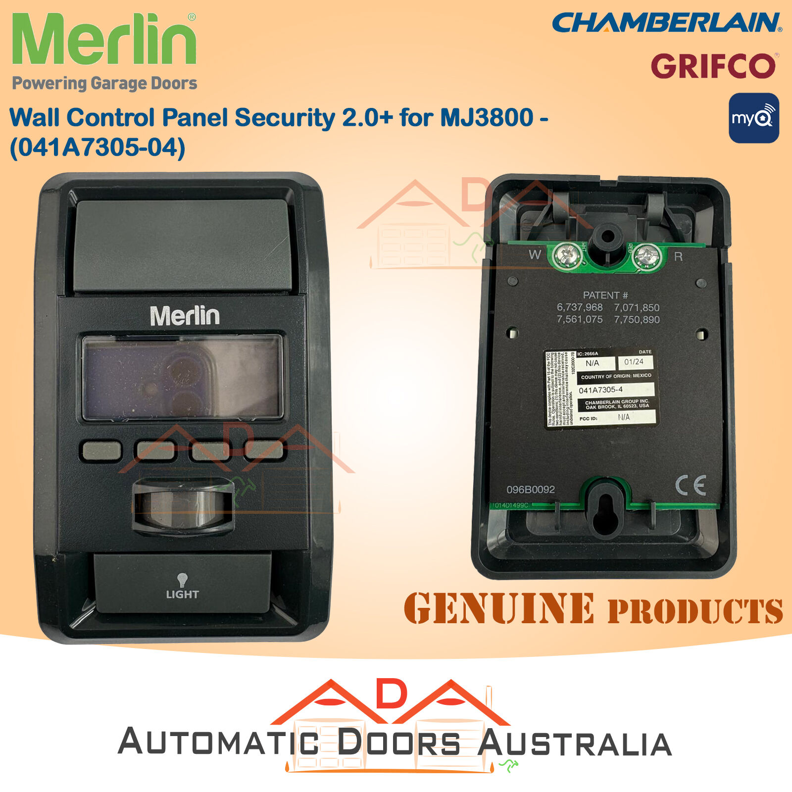 • This is a Chamberlain Wall Mounted, Multi-function Door Control. For use with various Chamberlain Security+ 2.0 Garage Door Openers; manufactured after 2012. This menu-driven multi-function panel offers the resident complete control of their garage door opener. The LCD display features inside garage temperature, time and system diagnostics, and Timer-to-Close set up. The featured light button allows user to control garage door opener work lights. Check the manual or replacement parts diagram